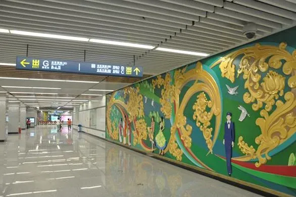 3月10日中午,在地铁通化门站站厅层服务台,看到了两张布满五颜六色绘画的手绘导乘图,一张是西安特色地图,一张是通化门导乘图。两张地图都是用鲜艳的水彩笔绘制,增加了不少卡通造型的建筑地理图形,简洁的线条配上明快的文字,使西安的重要旅游景点、街道、学校,还有通化门地铁站附近的单位及商场、小区、酒店等一目了然。