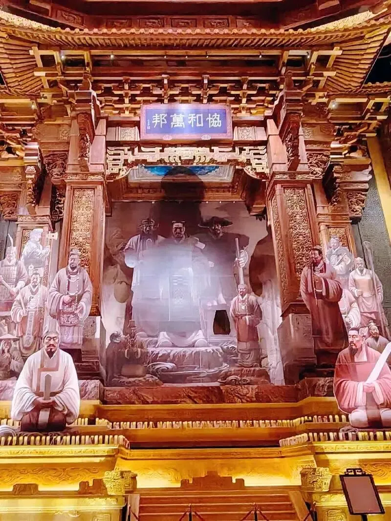 采用 360 度环形剧场设计,全景演绎汉代历史,结合投影与实景,再现刘邦建国等经典场景。