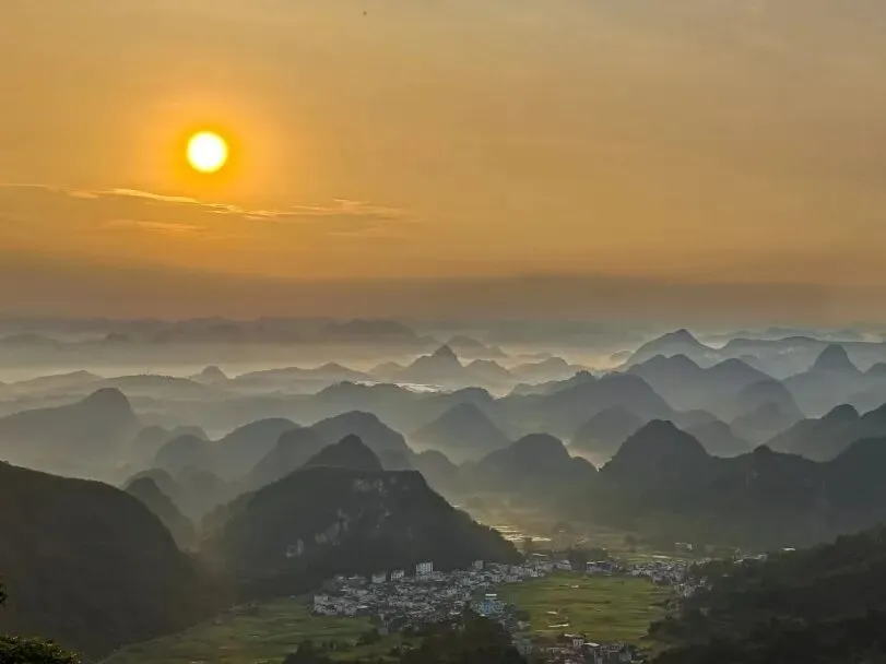 与远处的喀斯特峰林相依
