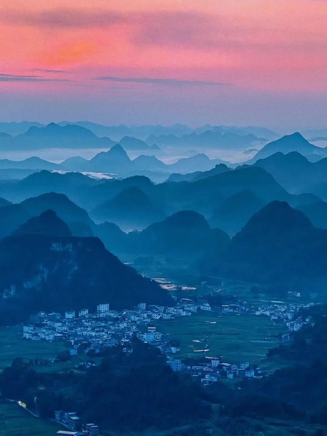 用长焦拉近远山与村寨的距离