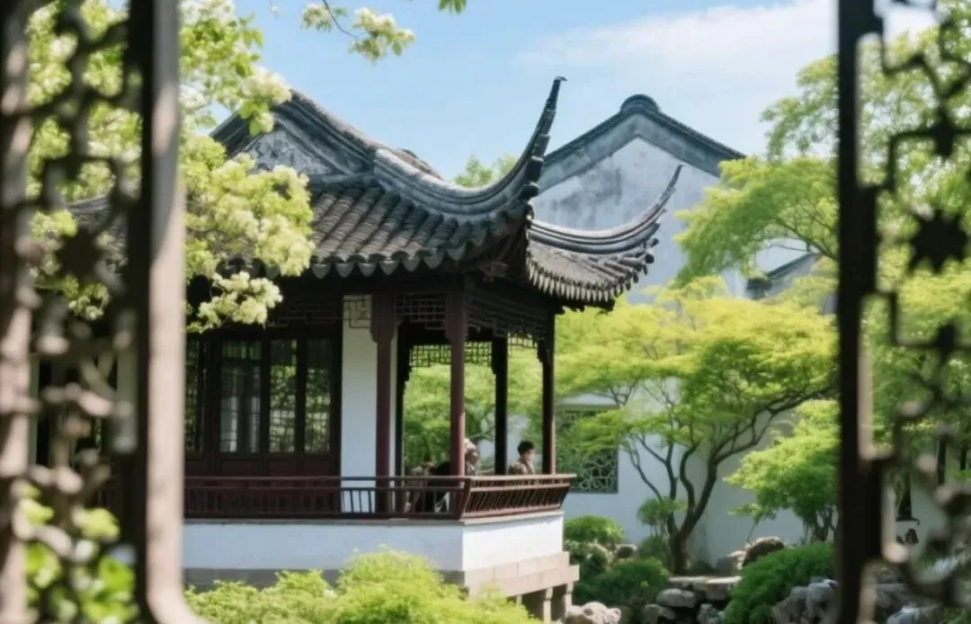 花窗成了天然的画框,框住一角飞檐,背景是湛蓝的天空。那些涌动的人潮,奇迹般地被窗棂挡在了画面之外。