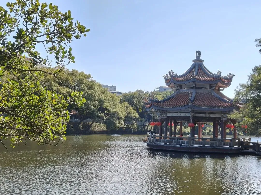 由于没有做攻略,我们在里面窜街走巷,一路乱逛,正是这随意的乱逛让我们看到了古城居民在门口晾晒衣服,在庭院里侍弄花草,老人围坐闲聊的画面,他们与古老的街巷、建筑共生,这热气腾腾的烟火气,构成了古城鲜活的一面。 一路乱逛来到了潮州西湖景区。潮州西湖历史悠久,至今已有1200多年的历史,是潮州八景“西湖渔筏”所在地。它既有园林的秀美,又有历史的厚重。我们在里面浅逛了一下,在湖心亭前拍照留念,在潮州爱国主义教育基地涵碧楼的台阶上留下了足迹。