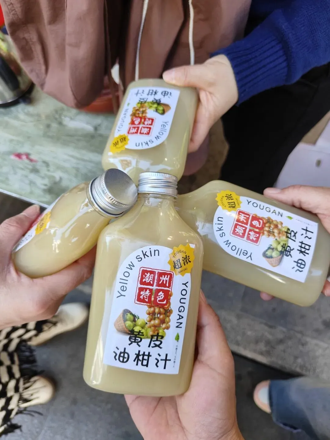 漫步石板路,走过状元坊、榜眼坊、四进士坊、七俊坊......二十三座牌坊如历史长廊,记载着潮州人杰地灵,英雄辈出的历史,诉说着潮州往昔的辉煌。 牌坊街两边是鳞次栉比的商铺,售卖着潮州特产,各式小吃及工艺品,玲琅满目。大家逛得口干舌燥,买了四瓶当地的特色饮品黄皮油柑汁,8元一瓶,酸甜可口,口感清凉。