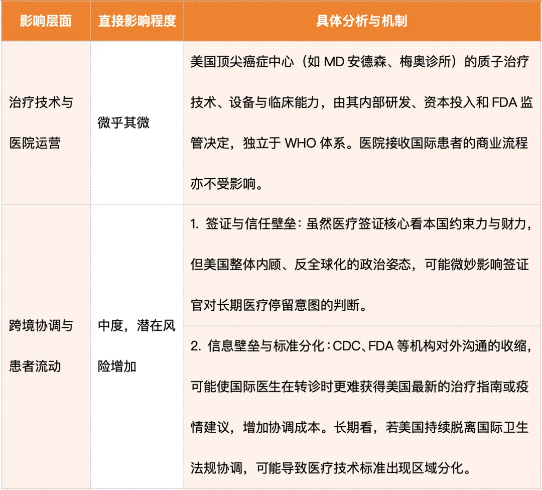 质子重离子治疗作为肿瘤放射治疗的尖端技术,其跨境求医链条高度复杂,涉及医学评估、签证、医疗衔接、支付与后续康复等多个环节。美国退出WHO的冲击波,沿着这条链条传递,产生了不同程度的影响。