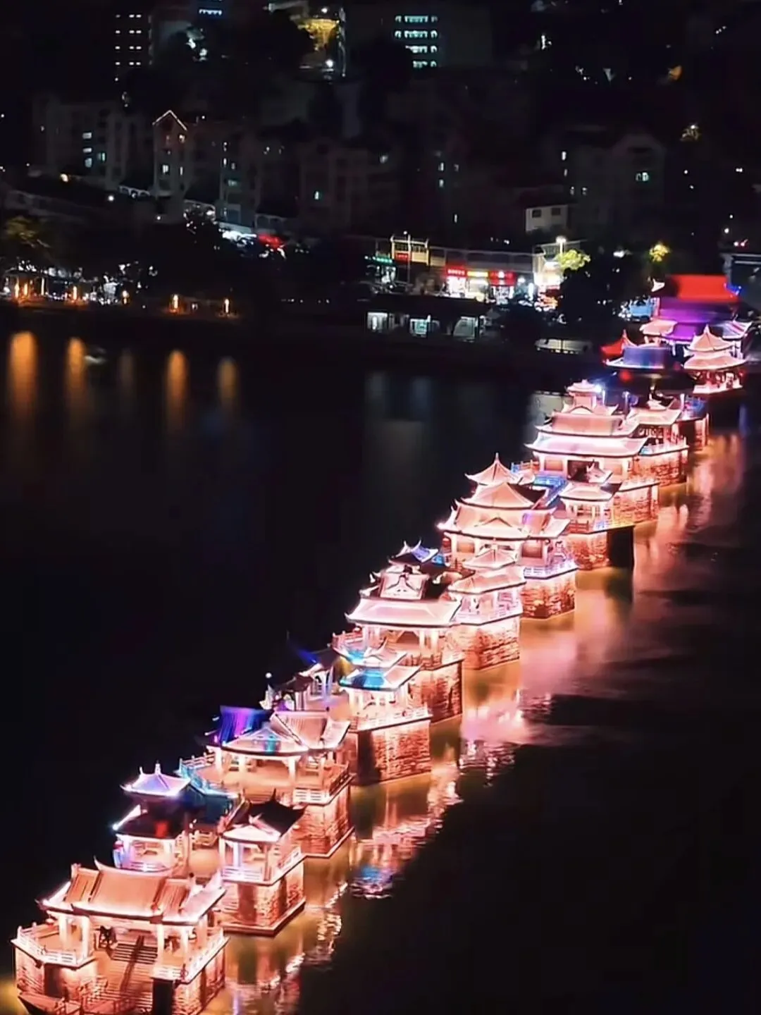 ✅ 景点特色:宋代古桥变身光影秀场,韩江两岸千盏花灯映衬非遗英歌舞。
