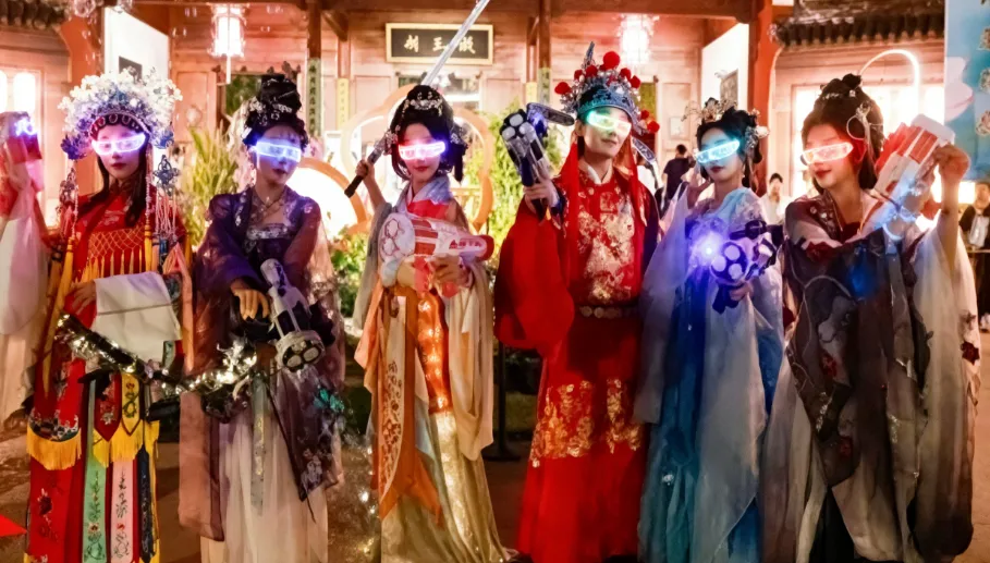 梅花遇上灯影,开启一场穿越古今的梦境。参与“赛博朋克:逆转幸运司”沉浸式剧本杀,在浮香阁欣赏国风即兴演绎,还能用宋风“交子”货币兑换特色小吃与手作,夜游超山更有味!