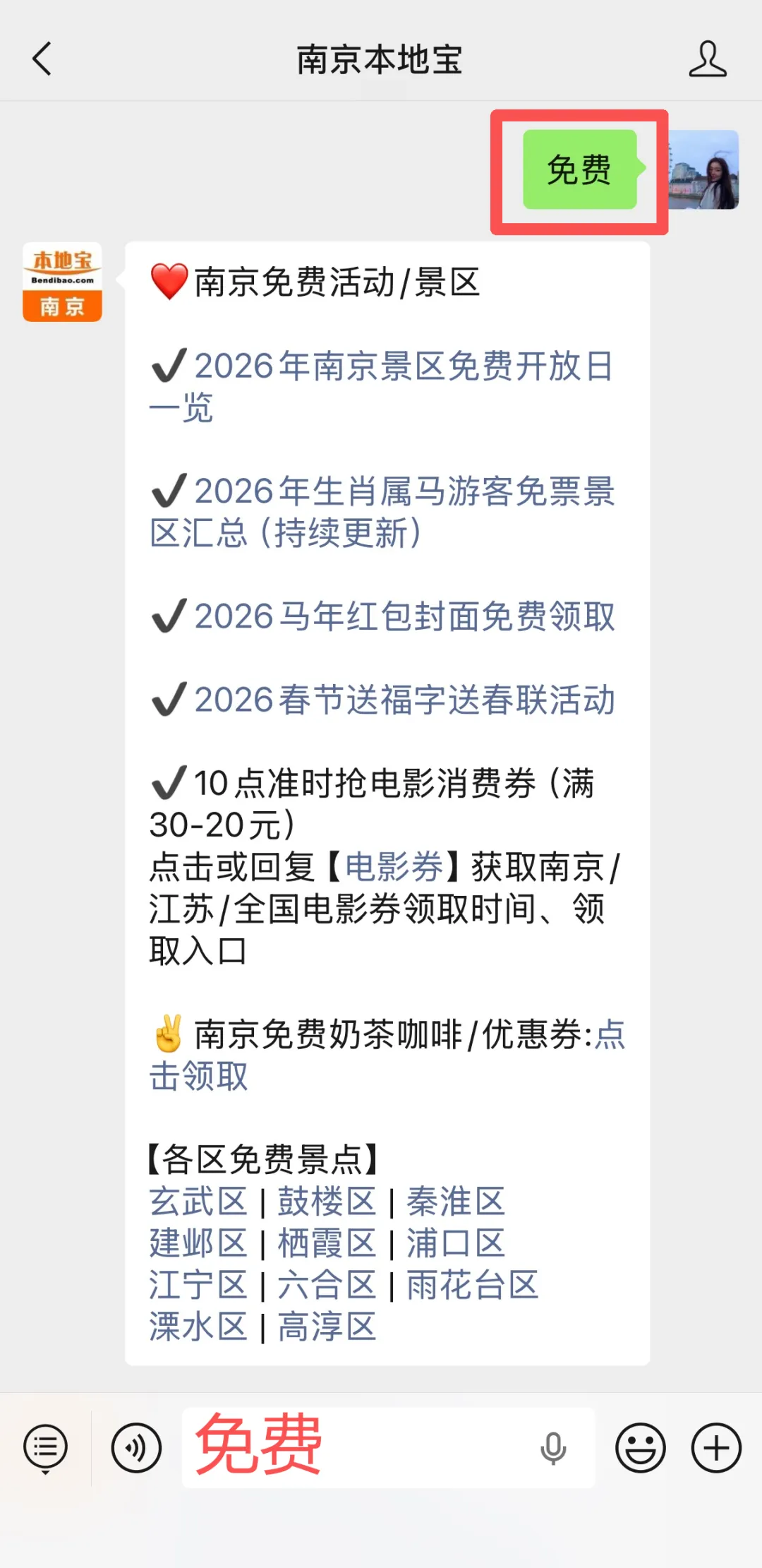 回复【免费】获取南京免费信息汇总