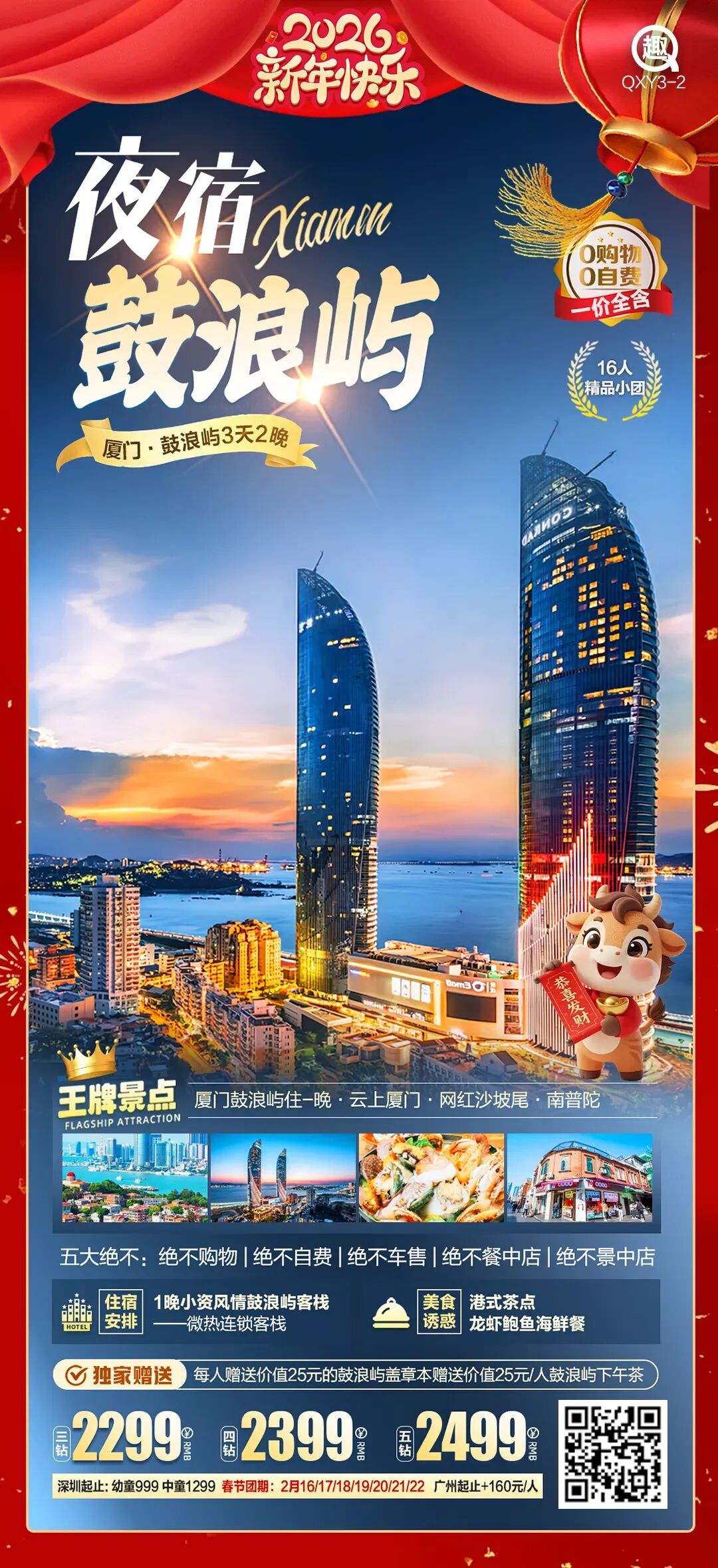 - 交通:需从厦门邮轮中心厦鼓码头乘船前往,春节建议提前通过官方渠道购票。