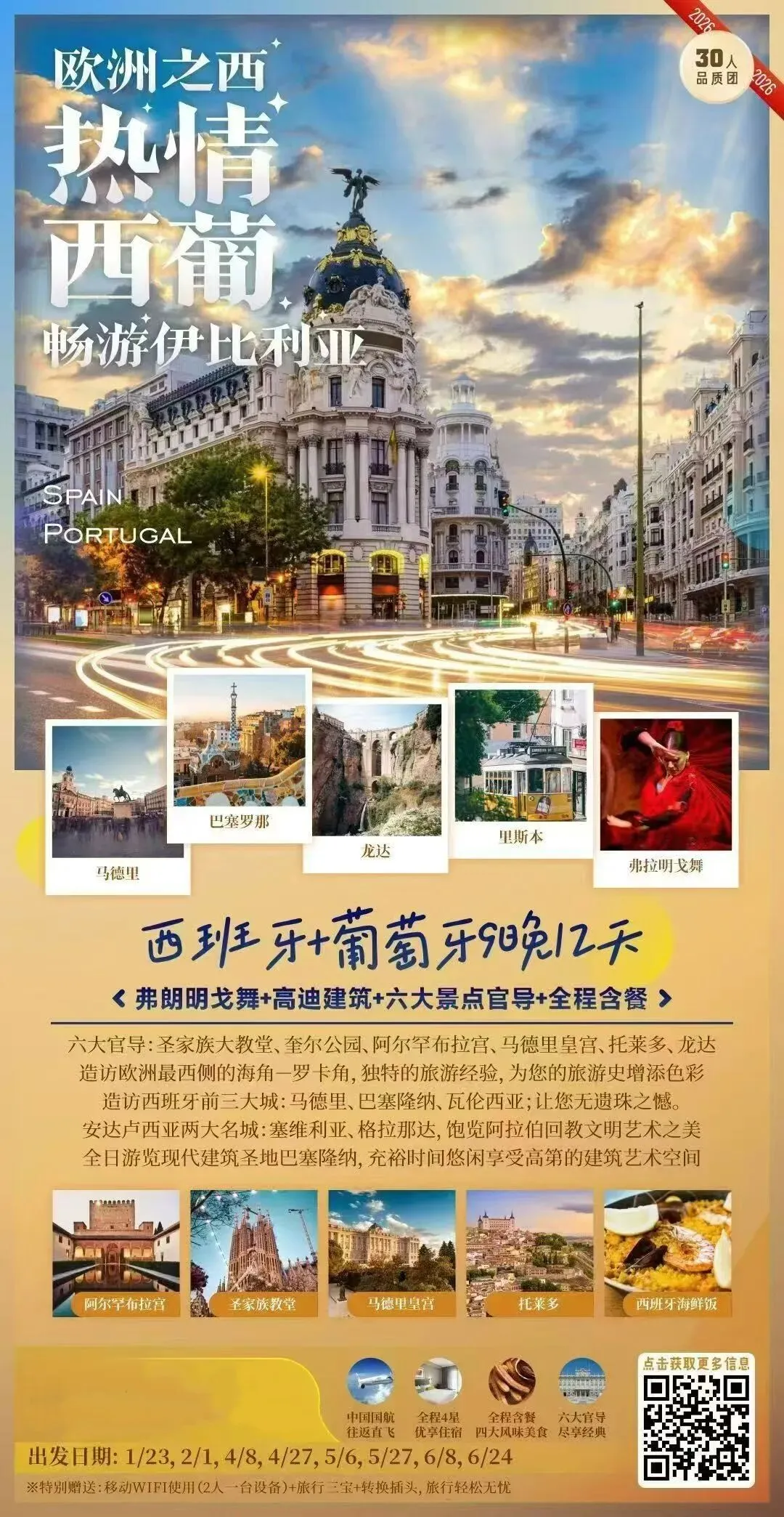 南欧六大景点门票,六大官导讲解,四大美食西班牙葡萄牙 9 晚 12 天弗朗明戈舞