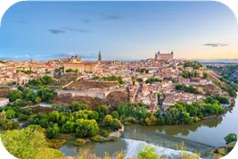 龙达位于西班牙安达卢西亚,是一座坐落在悬崖之上的著名山城。城市被壮丽的塔霍峡谷一分为二,新桥横跨其上,成为龙达最具代表性的地标。这里被誉为现代斗牛的发源地,拥有西班牙最古老的斗牛场。老城区保存着中世纪风貌,白墙小巷与石板街道充满魅力。龙达因独特的自然景观与深厚的历史文化底蕴,成为安达卢西亚最受欢迎的旅游胜地。托莱多(含官导),Toledo