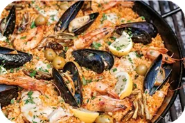 罗卡角位于葡萄牙里斯本以西,是欧洲大陆的最西端,被誉为“陆地的尽头、海洋的开端”。这里峭壁高耸,直面浩瀚大西洋,风景壮丽而震撼。16世纪葡萄牙诗人卡蒙斯曾用诗句赞美此地,使之闻名于世。如今,罗卡角矗立着一座白底红顶的灯塔和纪念石碑,石碑上刻着“这里……陆止于此,海始于斯”的铭文,成为游客打卡与感受大航海时代精神的重要地标。西班牙海鲜饭,Paella