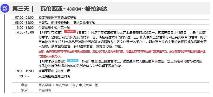 苏州4号地铁人民桥南下车2A出口20米左拐20米就到★ 优选航司:精选中国国际航空往返直飞,免去转机的旅途劳顿,优选进出更多时刻体验西葡风情★ 品质升级:西班牙海鲜饭,葡萄牙鳕鱼餐,百年老店葡式蛋塔,西班牙油条★ 特别赠送:移动 WIFI使用(2人一台设备),随时随地分享您的旅途心情,记录难忘瞬间★ 贴心服务:每位客人均赠送旅行三宝(耳塞、充气枕、眼罩)+转换插头,旅行轻松无忧阿尔罕布拉宫(含官导),TheAlhambraPalace