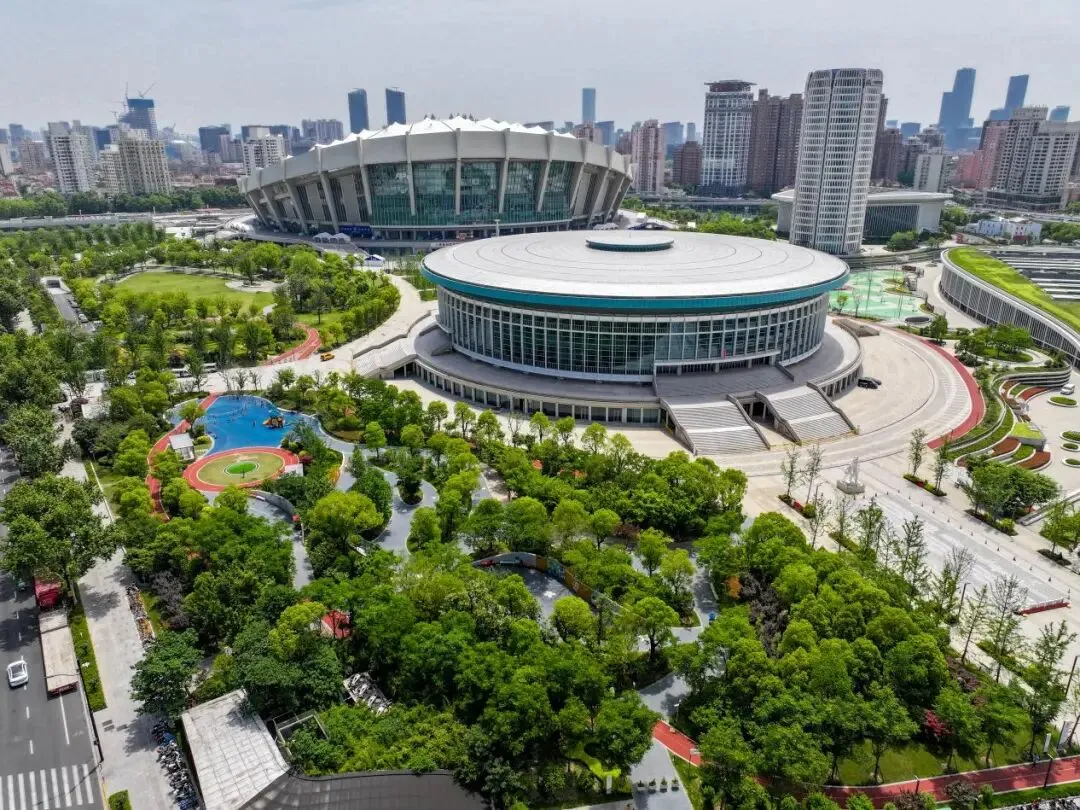 徐家汇体育公园在保留上海体育馆与上海体育场专业赛事功能的同时,巧妙打造了南北两大主题户外空间,显著提升了城市公共空间品质。其中,北侧“有氧公园”沿零陵路布局,自西向东依次设置家庭共享空间、口袋公园、户外休闲公园与亲水公园,形成层次丰富、功能多元的绿色开放带。这里绿意盎然、步道蜿蜒、设施完善,不仅满足了市民健身、休憩、亲子互动、宠物游玩等多样化需求,更营造出舒适宜人、充满活力的城市生活场景,成为周边居民日常放松身心、亲近自然的理想去处。