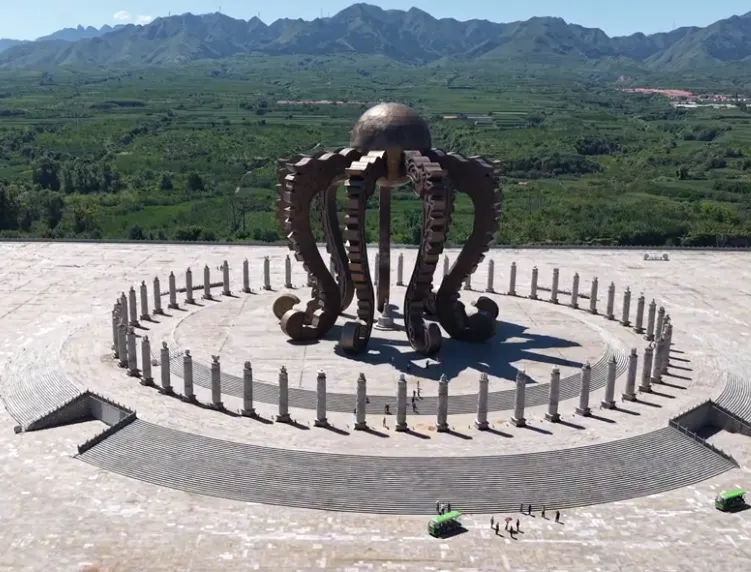 中华合符坛位于涿鹿县矾山镇黄帝城文化旅游区内,总占地500亩,由中国最大单体龙形雕塑九龙腾飞、56个民族图腾柱、合符石刻、三祖桥和龙凤华表和中华一统广场构成,坛体中间56根高9.9米的民族图腾石柱同心围绕,象征着中华民族大团结。中华合符坛依地势而建,规模宏大、气势雄伟。不仅给人庄重、雄浑的视觉震撼。