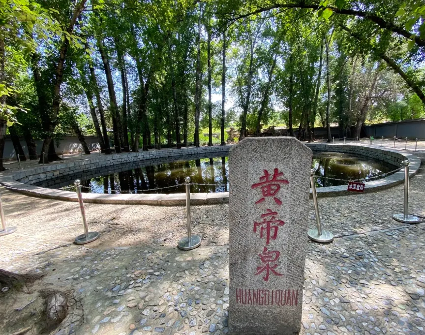 黄帝泉位于黄帝城东南500米处,古称阪泉,民间又称黑龙池,是当年黄帝族饮水之处。此泉冬不结冰,夏不生腐,久旱而不竭,常年水温保持在12.3摄氏度-13.4摄氏度之间。泉水源于地下5000米,有七个大小不同的泉眼,泉水平地涌出,潴而成池,水色清澈透绿,水质甘甜滋润,日流量达4600一4800吨,为含锶质重碳酸钙镁型天然优质矿泉水。