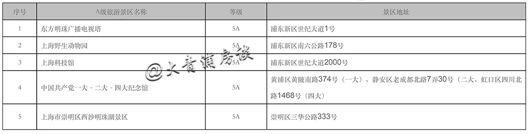 截至目前,上海仅有5家国家5A级旅游景区,它们分别是: