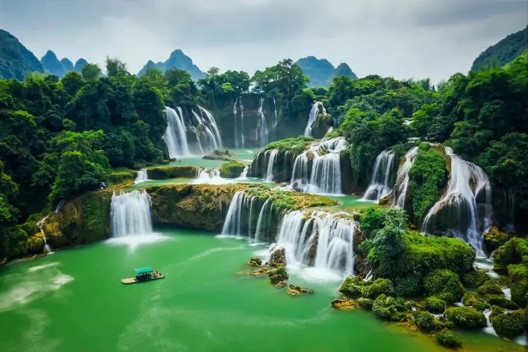 📍德天跨国瀑布:站在观景台抓拍瀑布飞流直下的震撼,水雾缭绕自带滤镜;