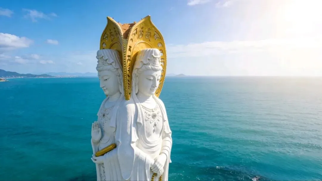踏入不二法门的那一刻,就像闯进了尘世之外的净土,朱红殿阁藏在葱郁绿意里,晨钟的余韵绕着古木轻扬,连风都慢下了脚步。行至南海之滨,108米海上观音凌波伫立,洁白圣像映着澄澈碧海,三面法相慈悲俯瞰万顷波涛,阳光洒在莲座上,鎏金光影晃得人心头一片柔软,连呼吸都裹着海盐与檀香的清润。