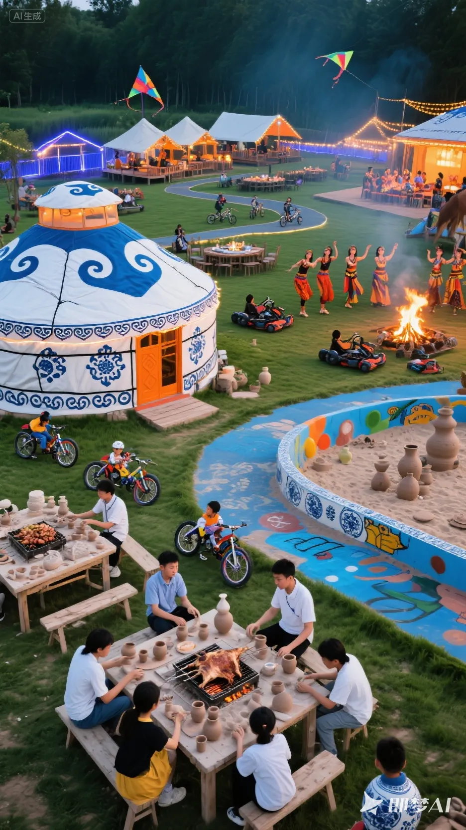 在冶陶村(yetaocun.com)项目内,设立72工序陶艺工坊,游客可体验拉坯、画青花,作品可烧制带走,加上研学体验。