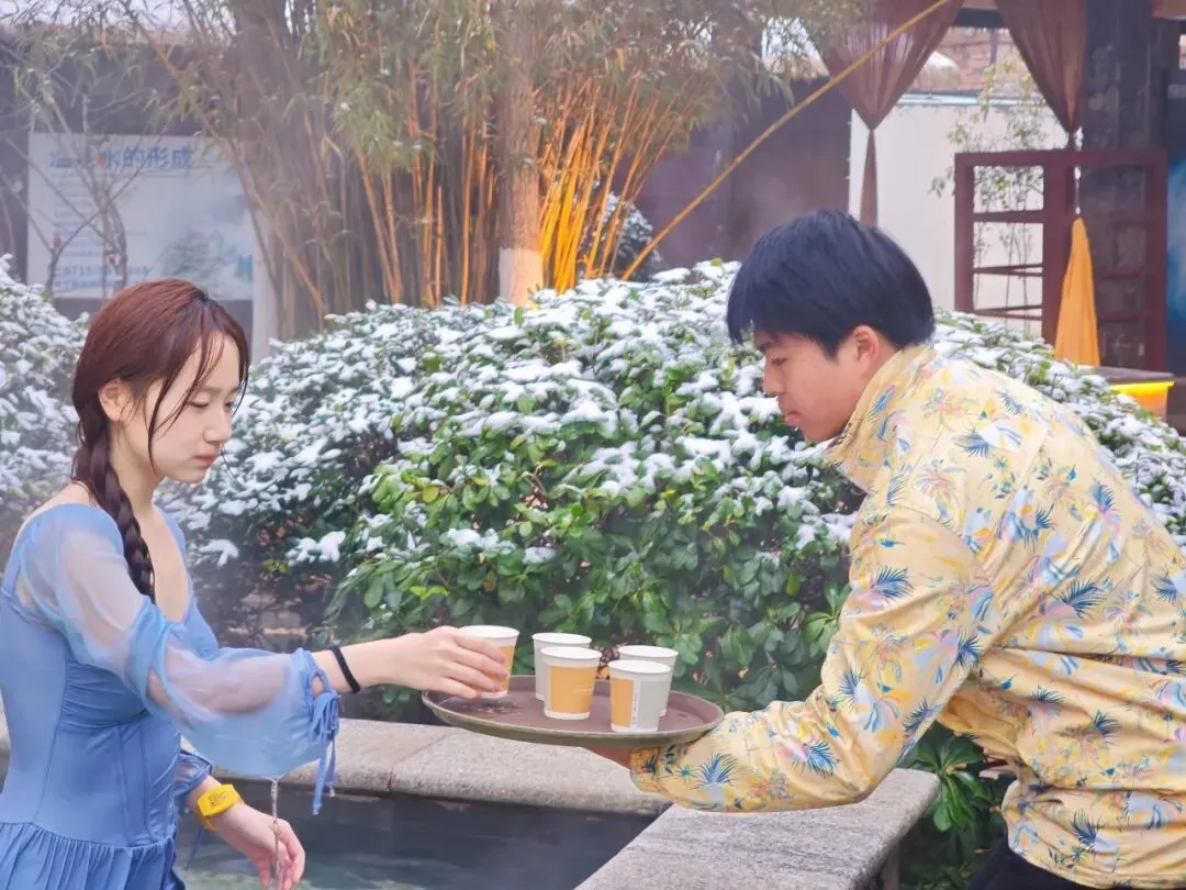 “每年下雪必来咸宁泡温泉,一边赏雪景一边泡汤,再配上一杯热姜茶,真是人间至乐!”武汉游客金女士捧着景区免费提供的姜茶,十分惬意。