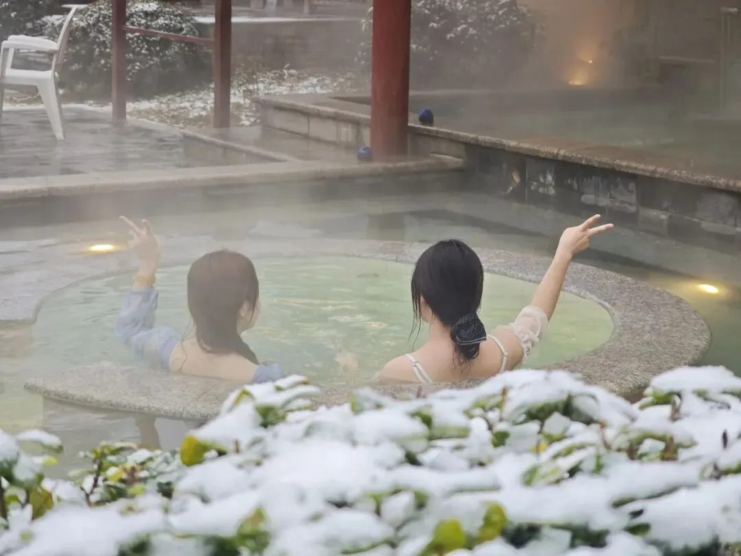 白雪热汤引客!咸宁温泉景区接待量较平日增超两成