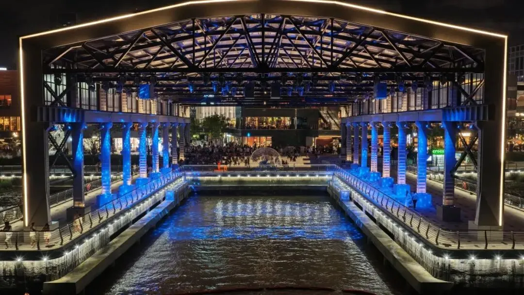 GATE M 西岸梦中心前身是亚洲最大水泥厂——龙华水泥厂。它成立于1920年,至今已拥有超百年历史。所生产的“象牌”水泥,先后用于建设上海海关大楼、国际饭店等全国多个地标建筑。船坞码头前身为上海水泥厂的水运停靠设施,用于装卸原材料和成品水泥。现在,这座船坞基本按原样保留,但功能被完全置换,转型为水岸秀场,成为展现前沿光影艺术和科技的“画布”。每到周末,船坞变身舞台,上演各种快闪演出,吸引市民游客纷至沓来。