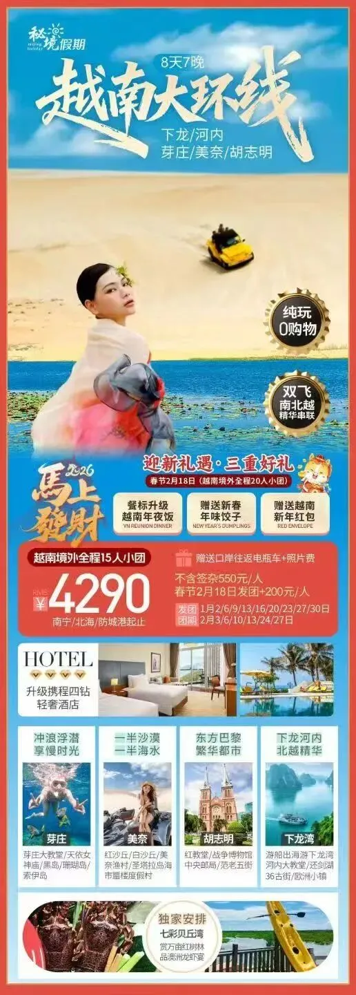 芽庄属于越南全境开放目的地,中国公民需凭有效护照+签证入境,支持另纸签、落地签、电子签出行,按需选择更便捷的办理签证类型,避免出入境受阻。