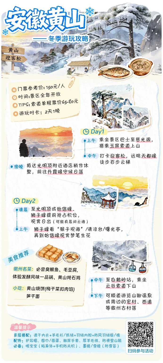 还有安徽黄山看日出……都去!!