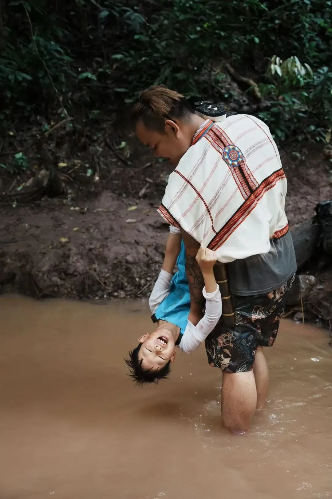 ▲小朋友不小心掉到了水里该怎么办?基诺族的阿龙哥哥自有办法!