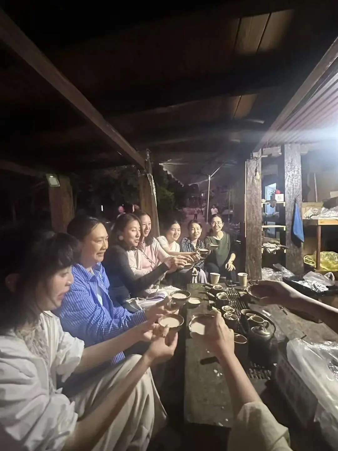 晚上,我们还会在尔么姐的小院里邀请布朗族的小调歌手来一场星光下的篝火晚会,大家一起弹琴,唱歌,跳舞,欢笑着,喝着烤奶茶,这是最放松、最开心的时刻。