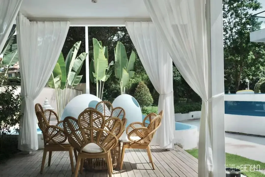 住的方面,我们舍弃了千篇一律的酒店。在版纳,我们住的是充满设计感的独栋民宿,有足够的公共空间让小朋友们一起玩耍,安全又自在。