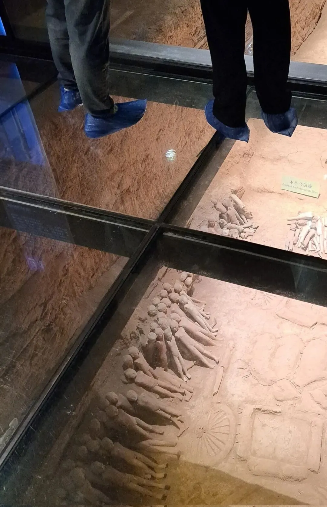 汉阳陵是西汉景帝(公元前188-141年)的陵墓。陵墓周围看起来像一片平原,但地下却被改造成了一座规模宏大、设计先进的博物馆。那里有无数出土的陶俑,包括武士、女性和动物,我们有机会近距离欣赏。这真是一处隐藏的宝藏,其精彩程度仅次于秦始皇兵马俑。
