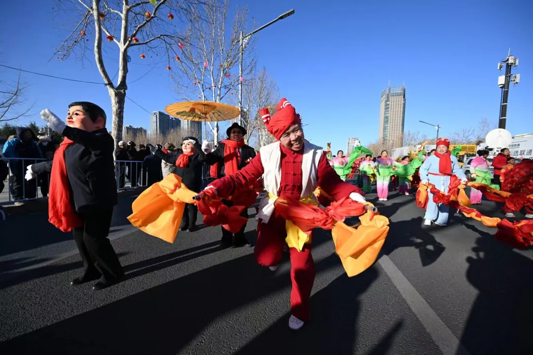 ③元宵秧歌巡演热闹开演!舞龙舞狮、秧歌高跷、锣鼓武术、旱船等精彩上演,尽显本土非遗风采,喜庆氛围拉满!