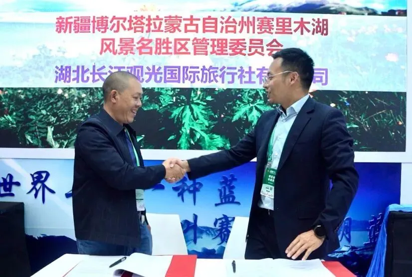 在博州展厅,赛里木湖景区以“万名楚人游赛湖”为主题,主动对接联系湖北大中型旅行社,与108家旅行社企业成功达成了引客入赛战略合作,并现场与中青旅、宝中国旅、湖北金桥假日国旅、湖北顺达国旅、湖北海峡国旅、湖北峡州国旅、宜昌长江观光国旅、湖北景秀假日国旅、宜昌新三峡水电国旅等10余家代表签定引客入赛战略合作协议。