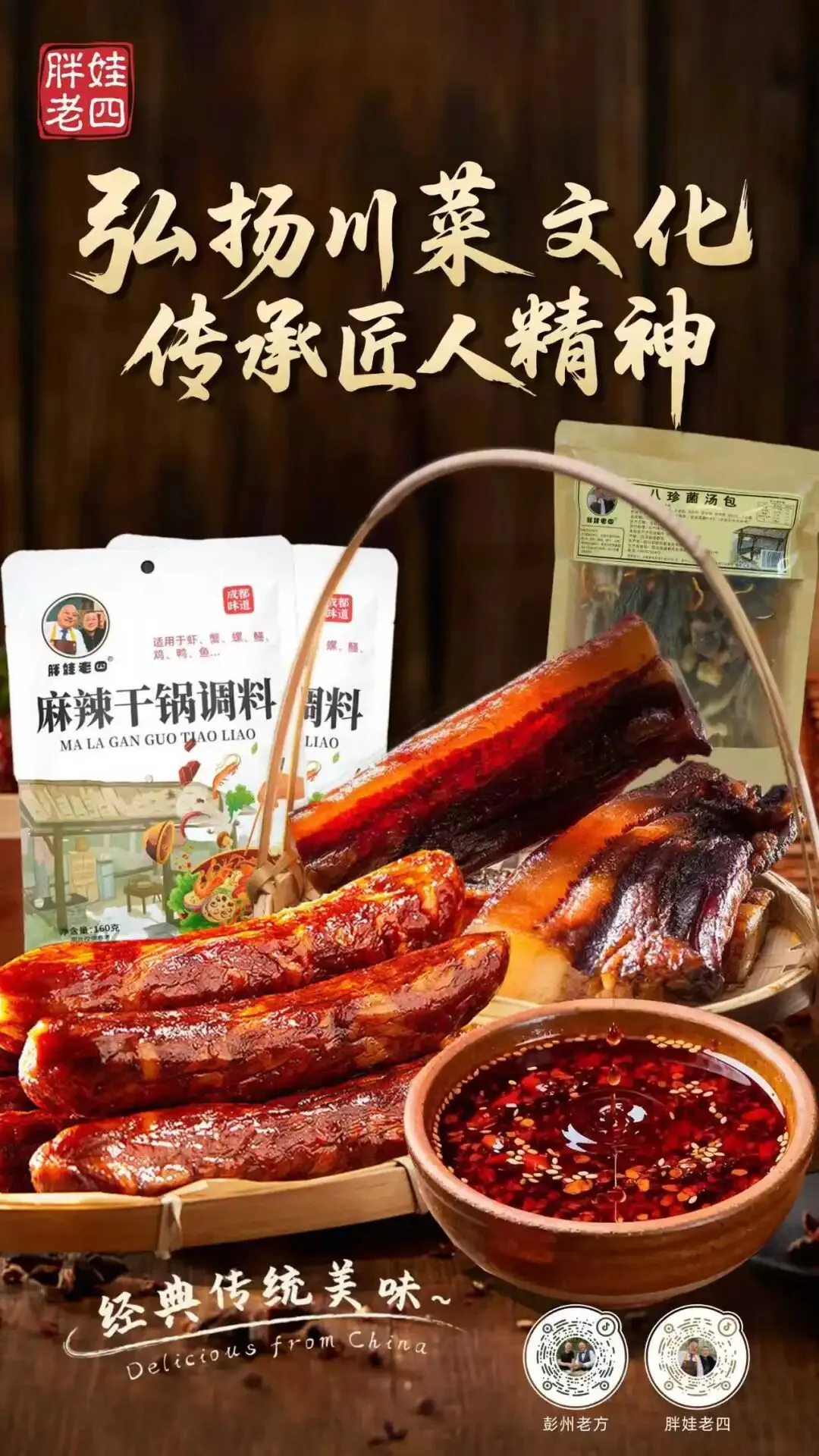 公司是新媒体流量赋能实体经济的生动案例,由全网粉丝超450万的美食短视频IP“胖娃老四”(王旭宇)创立。创始人师从名厨,凭借扎实厨艺与个人魅力在线上积累庞大受众后,顺势创立品牌,实现从内容到产品的转化。公司专注于研发销售具有四川风味的预制调料与食品,如钵钵鸡调料、油泼辣子、香肠腊肉等,让粉丝喜爱的“屏幕味道”成为可轻松购入家庭的“厨房味道”,开辟了农产品品牌化的新路径。