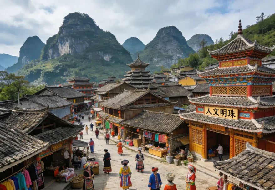 瑶山古寨,是荔波樟江景区一颗闪耀的人文明珠,承载着瑶族悠久的历史和独特的文化。走进古寨,错落有致的瑶族传统建筑映入眼帘,这些建筑以独特的工艺和风格,展现了瑶族人民的智慧和创造力。