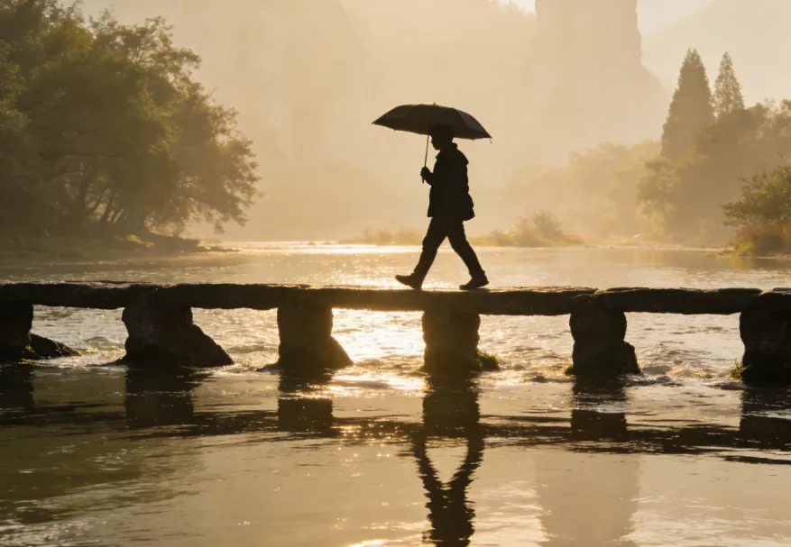 漫步桥上,脚下是历经百年磨砺的石板,触感斑驳而真实。桥的两侧,翠绿的藤蔓植物肆意生长,仿佛为古桥披上了一层生机勃勃的绿衣。桥下,响水河的河水清澈见底,河底的石头、水草清晰可见,河水在阳光的照耀下闪烁着粼粼波光。远处山峦连绵,绿树成荫,与古桥、河水相互映衬,构成了一幅如诗如画的美景。当微风拂过,河水泛起层层涟漪,仿佛将时光也轻轻摇曳,让人沉浸在这充满诗意的氛围中,忘却一切烦恼与疲惫。