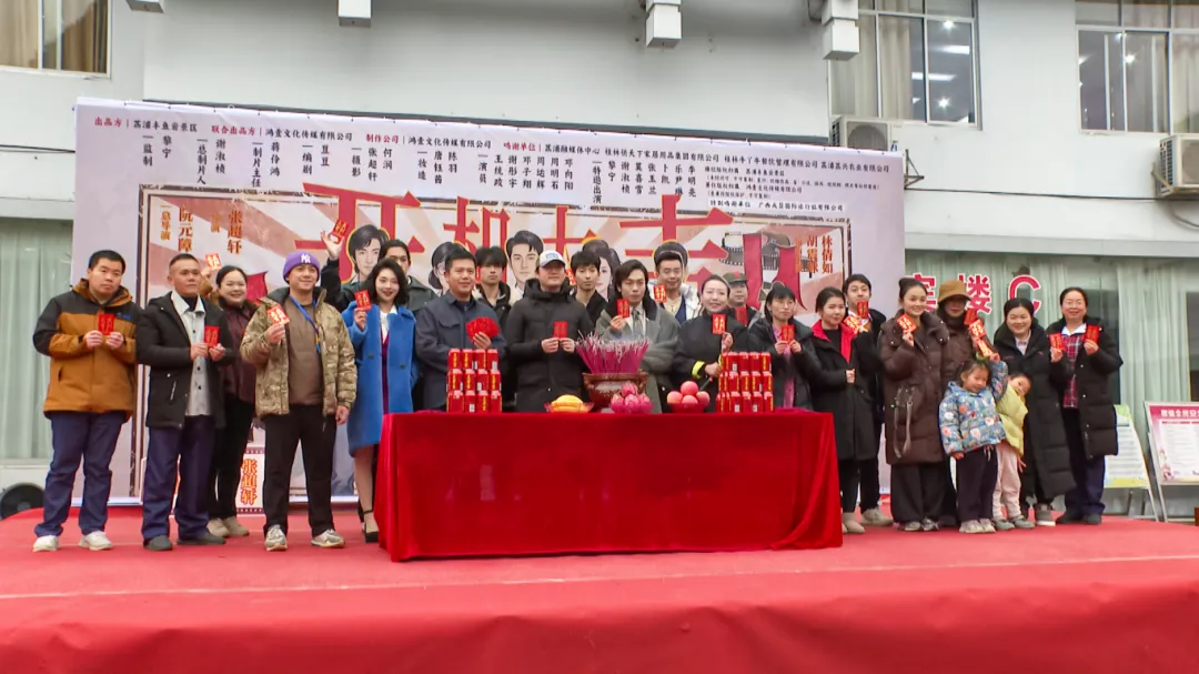 开机仪式上,丰鱼岩景区负责人致辞,表达了对项目的期许,坚信在各方携手努力下,该剧定能成为一部有温度、有影响力的佳作,让更多人了解荔浦、爱上荔浦。导演与制片人分享了创作初心与拍摄愿景。随后,主演与主创团队一同亮相。