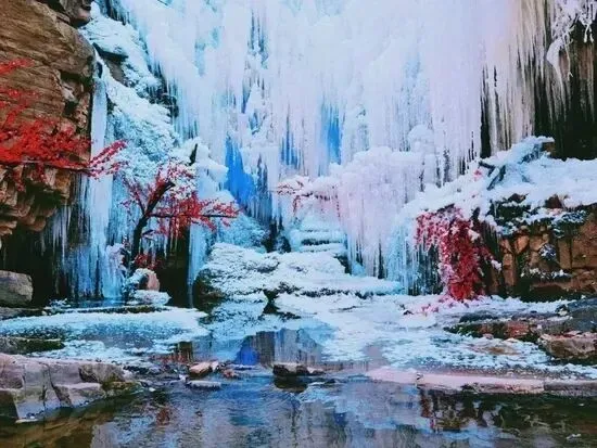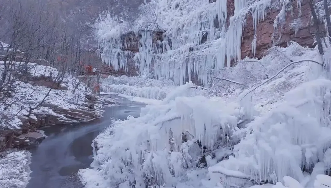 九峰山情侣谷的冰挂已如约而至,和家人、朋友一起赴一场梦幻的“冰雪情缘”吧