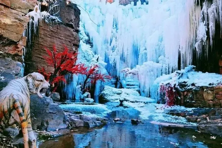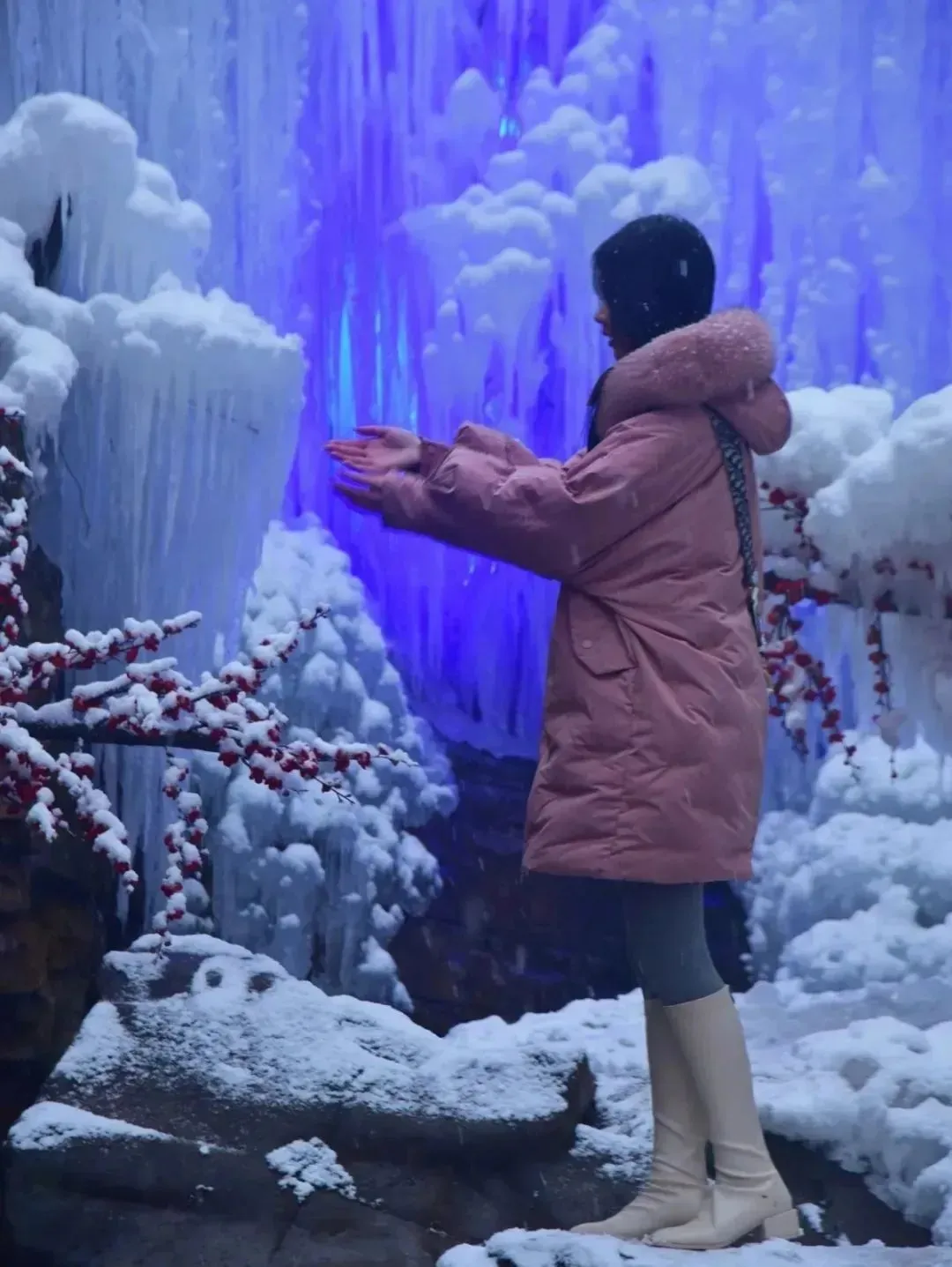 到了冬季,成了一座冰晶宫,成了整条情侣谷最靓的打卡地