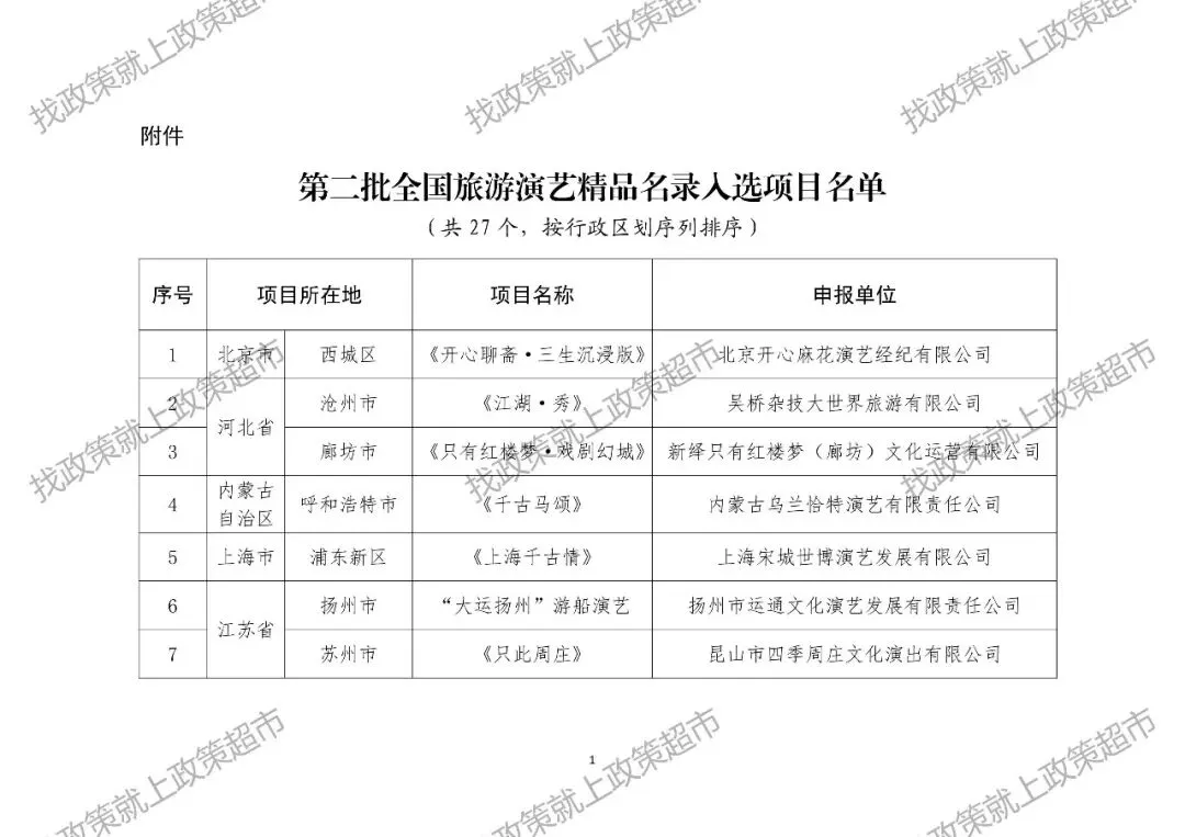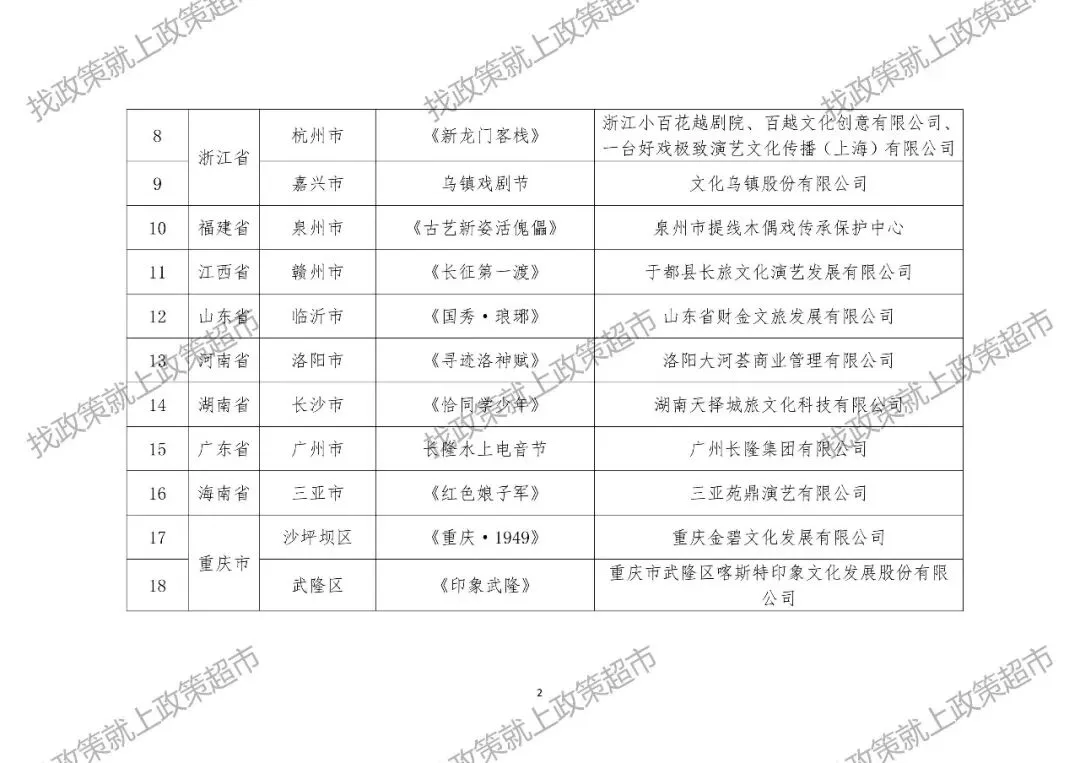 【全国旅游演艺精品名录】关于公布第二批全国旅游演艺精品名录入选项目名单的通知