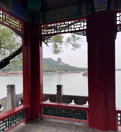 9:22检票进去颐和园,进园根据攻略,我们先去了幽凤桥,可惜阴天,而且没有长焦镜头,很难拍出很好看的照片。欣赏了一下景,就往回走,有些地点围了围栏在维修。我们直接导航画中游。