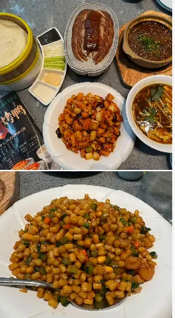 12:30从北宫门打车到朋友推荐的紫光园海淀店吃饭。112买了一个烤鸭套餐,看菜单加了一个炒疙瘩,以为是当地特色,结果不太吃的惯。