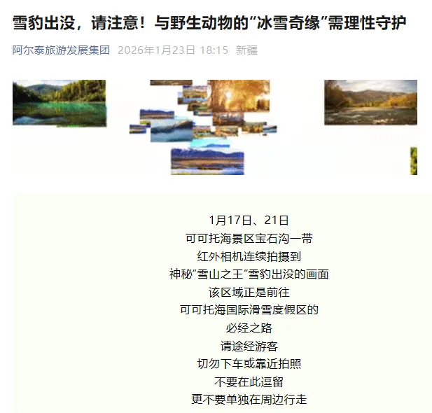 新疆一景区附近出现雪豹伤人事件,官方通报