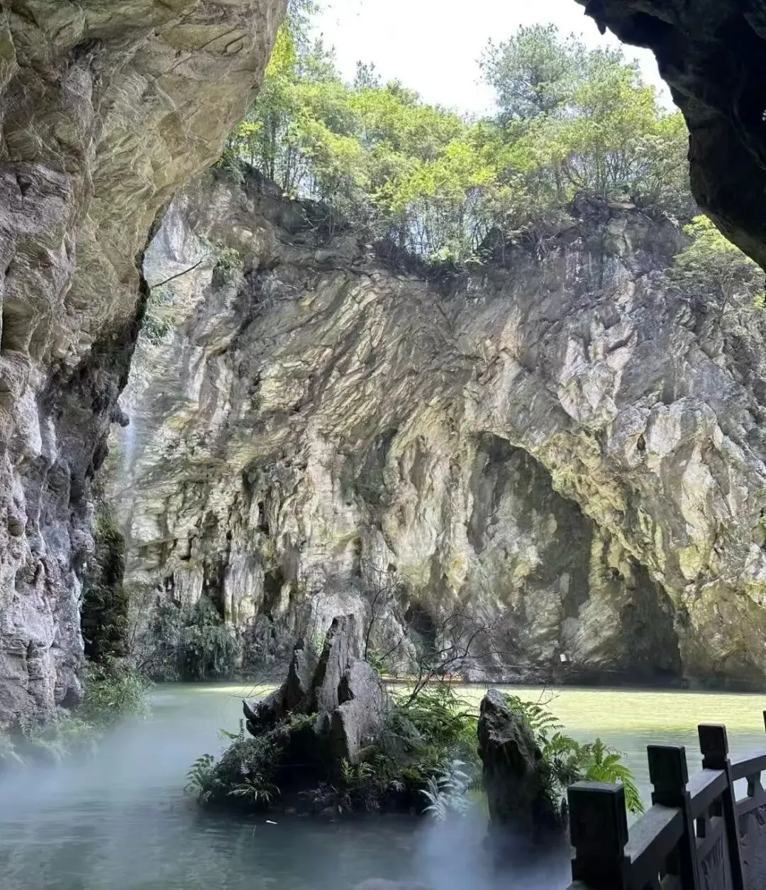 天河潭在花溪和清镇交界。 溶洞冷,地面暖,进洞加件薄外套。 洞里钟乳石像老树根,水面绿得干净,一条小船一划就出片。 洞外有古法水车和台阶老街,慢慢逛不累。
