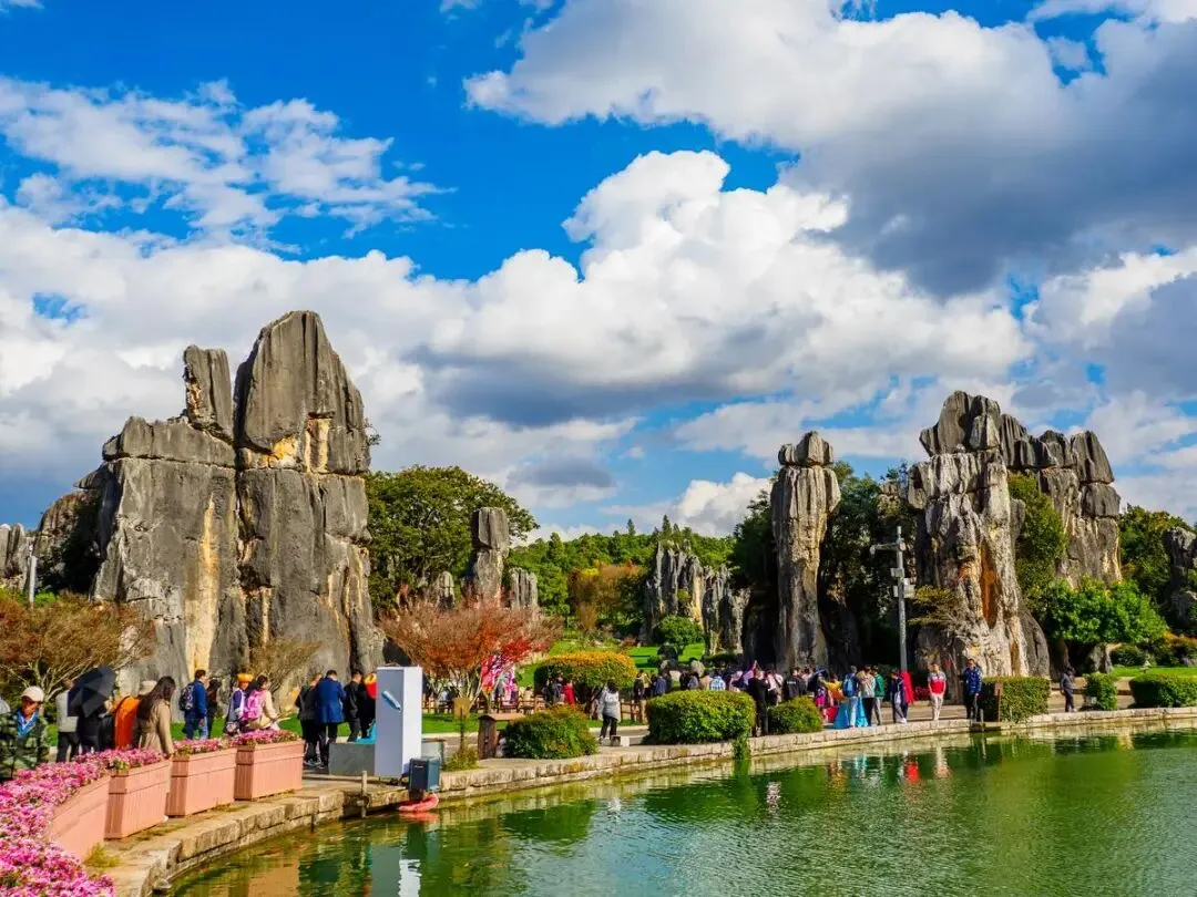 石林风景区,位于昆明市石林彝族自治县境内,是世界自然遗产、世界地质公园。春节期间,这里迎来了众多游客,他们被这片神奇的喀斯特地貌所吸引。