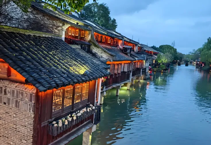 第一站:乌镇西栅作为嘉兴的头牌,这里不仅是“中国最后的枕水人家”,更是体验江南夜色的绝佳地。白墙黛瓦配上蓝印花布,随手一拍就是水墨画。建议您傍晚去,看灯火亮起时的西栅,那种“人约黄昏后”的浪漫瞬间就懂了。别只在大街看热闹,去坐坐摇橹船,听船娘哼一曲花鼓戏,才不虚此行。