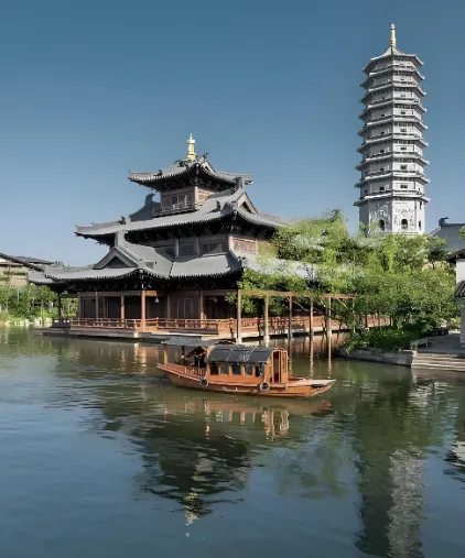 第六站:濮院时尚古镇这是近年翻红的宝藏古镇,比乌镇人少,比西塘时尚。这里的建筑融合了明清风格和现代设计,是著名的羊毛衫集散地。一定要去看看那里的“时尚秀”和灯光夜景,拍照特别出片,有一种穿越千年的时尚感,很多网红博主都在这里取景。