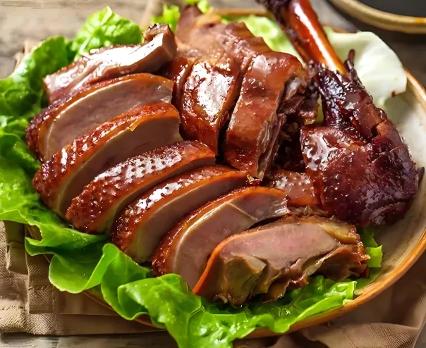 第二美食:文虎酱鸭这道菜是嘉兴人的心头好。鸭肉经过腌制、卤制、风干,色泽红亮,酱香浓郁。最地道的吃法是切一盘,骨头都是酥的,肉质紧实却不柴。在月河或者稍微大一点的饭庄都能吃到,是下酒的神器,也是带回家的好伴手礼。