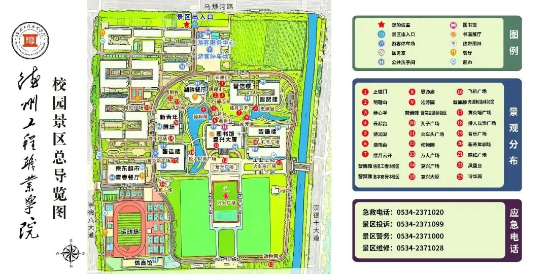 从人文景观到工业硬核,从生态休闲到生活配套,德州工程职业学院的景点早已形成“四大板块”——景点打卡区、工业科技区、生态休闲区、人文艺术区,每一块都有专属亮点,每一处都值得驻足。